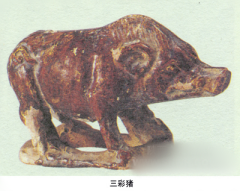 猪是人类最早驯化和饲养的家畜之一,已有12000年的历史,这只赭釉色的猪,腰长腿短,长嘴前伸,形状憨态可拘,似乎又蠢又笨,但对人类的贡献很大。