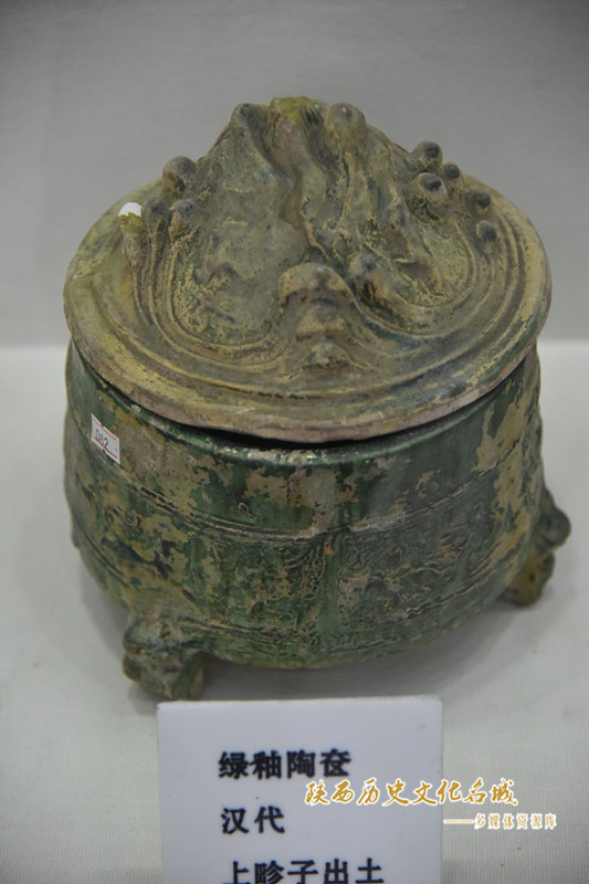 汉代 绿釉带盖陶鼎